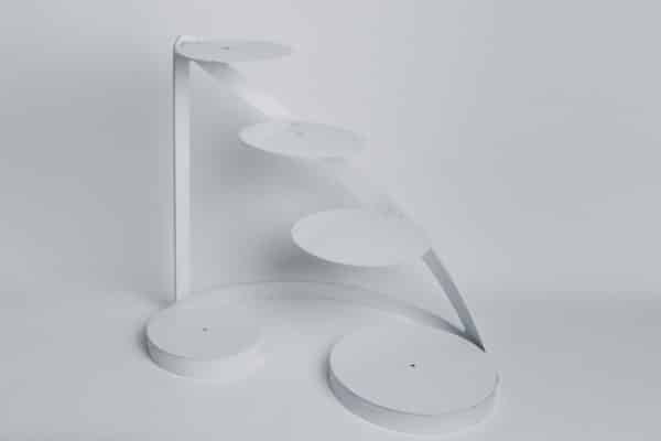 Valkoinen metallinen kerroskakkuteline, 5 porrasta.